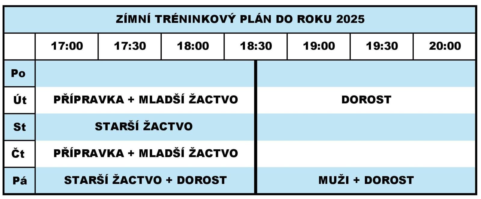 Rozpis halových tréninků, 1.11.2024 - 31.3.2025